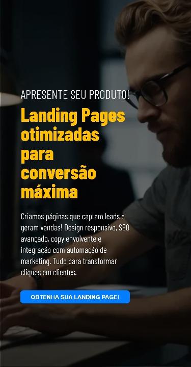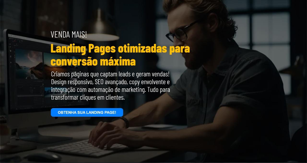 Criamos páginas que captam leads e geram vendas! Design responsivo, SEO avançado, copy envolvente e integração com automação de marketing. Tudo para transformar cliques em clientes.