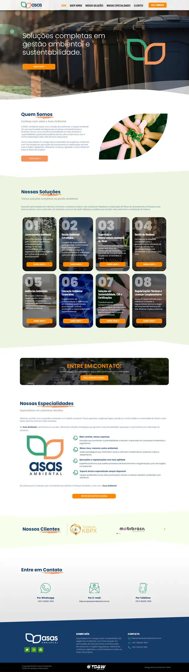 Surgindo como a melhor opção em gestão ambiental e sustentabilidade para empresas de transporte e correlatos, a Asas Ambiental nos procurou para desenvolver seu novo site, baseado no logo que foi criado para a empresa. Pegamos o primoroso trabalho feito pela Designer Vanise Begossi, criamos a Identidade Visual da empresa, seus componentes de apoio e todo o conteúdo publicado em seu novo site.
